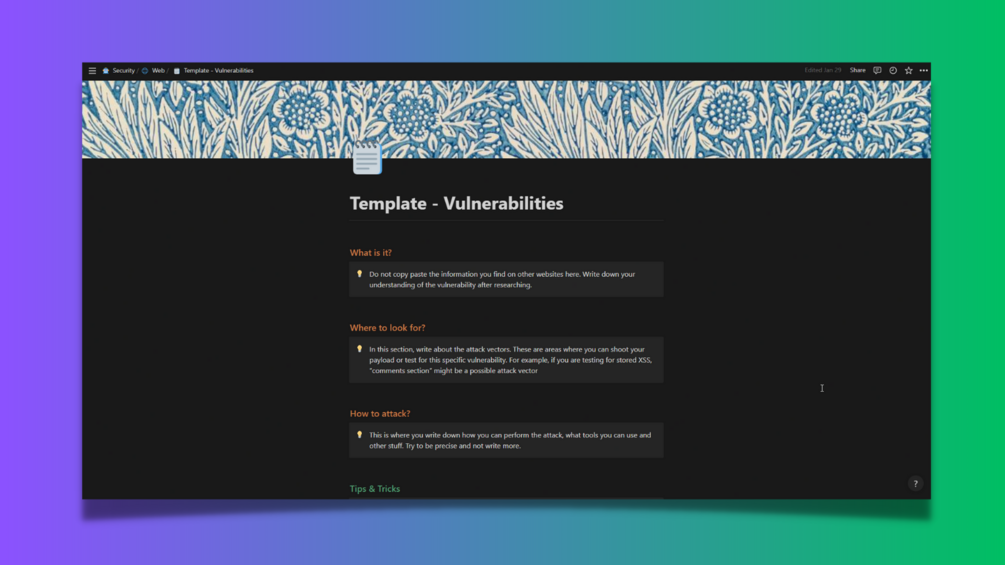 Ever found it hard to organize your notes when learning a new vulnerability for Bug Bounties?